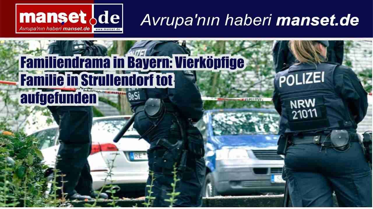 In der Gemeinde Strullendorf im Bundesland Bayern ist eine vierköpfige Familie tot in ihrer Wohnung aufgefunden worden. Nach ersten Erkenntnissen soll der Vater zunächst seine Ehefrau und die beiden Kinder erschossen und anschließend Suizid begangen haben.