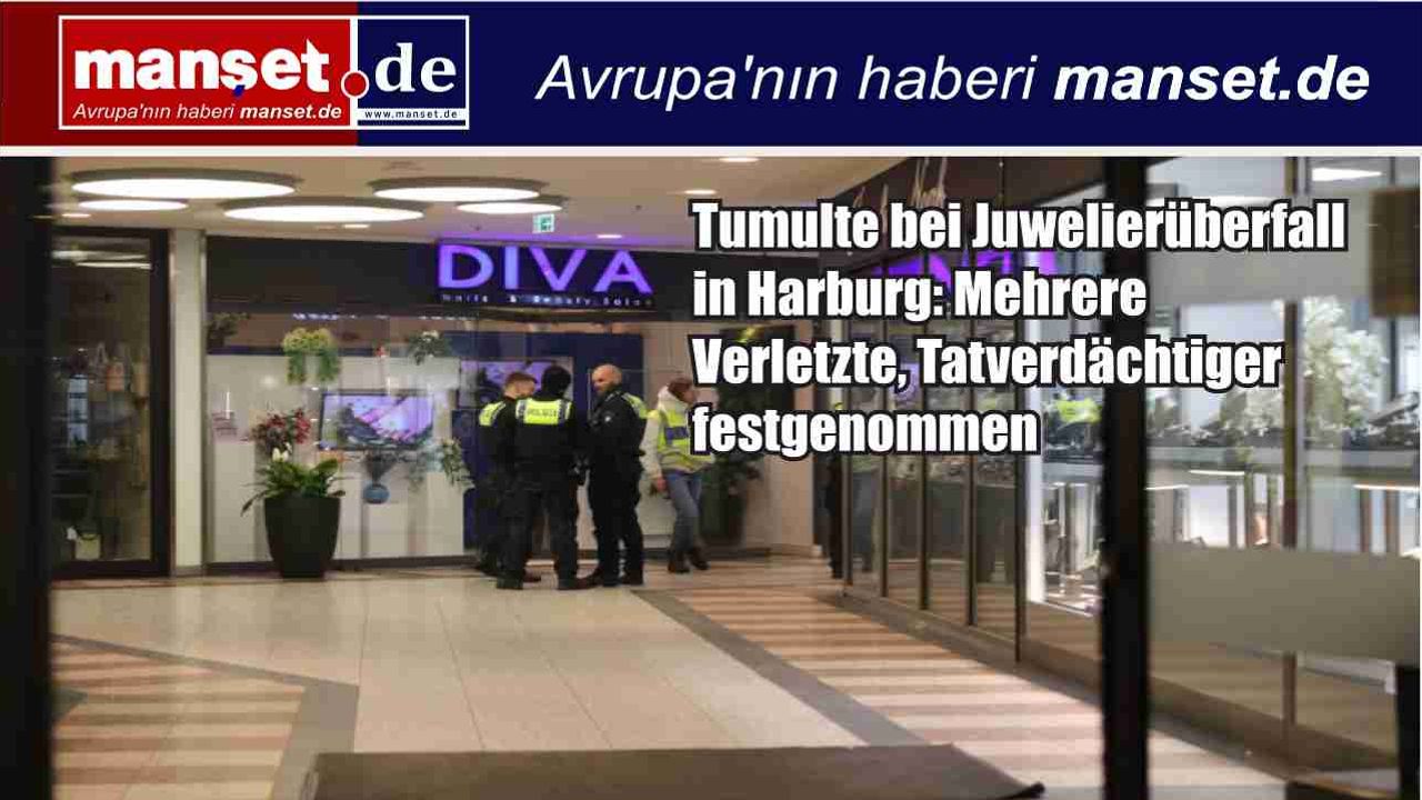 Bei einem versuchten Juwelierüberfall in einem Einkaufszentrum im Hamburger Stadtteil Harburg ist es zu Handgreiflichkeiten im Geschäft gekommen. Mehrere Personen wurden verletzt. Der mutmaßliche Täter wurde kurz nach der Tat festgenommen und der Polizei übergeben.