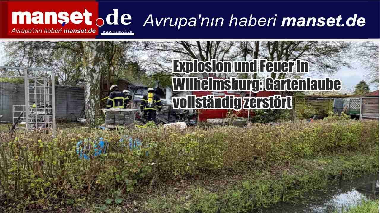 Im Wilhelmsburg ist eine Gartenlaube nach einer Explosion und einem anschließenden Brand vollständig zerstört worden.