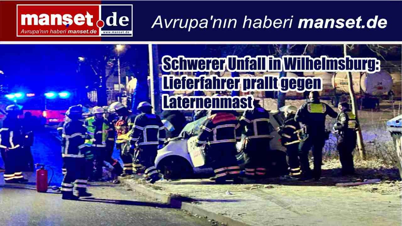 Schwerer Unfall in Wilhelmsburg: Lieferfahrer prallt gegen Laternenmast